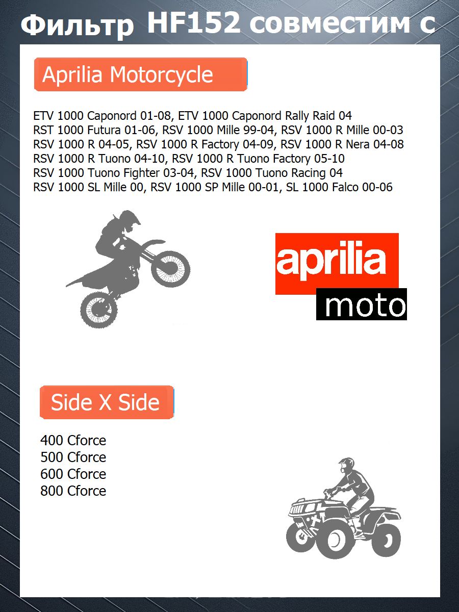 Характеристики масляного фильтр HF152 для мотоциклов: - Высокая пропускная способность
