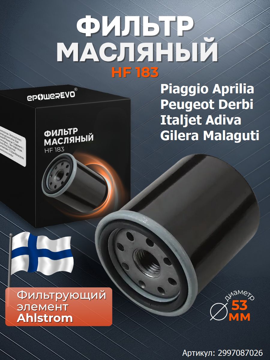 Фильтр масляный HF183 Piaggio Aprilia Peugeot Derbi Italjet Adiva Gilera Malaguti
