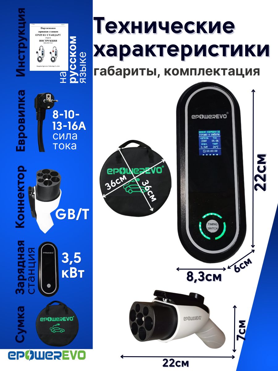 Зарядная станция GBT 3,5 кВт 220В— портативное решение для зарядки в любых условиях